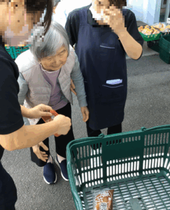 今回はデイサービスで行われている機能訓練(買い物リハビリ)の様子をお知らせいたします。